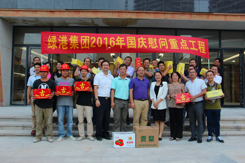 9月30日下午,在2016年國慶節(jié)前夕,綠港集團副總經理張杰,總經理助理、工會主席黃麗琴,嘉通公司總經理陳志杰深入各施工現場,查看工程建設進展情況,看望堅守奮戰(zhàn)在施工現場的一線員工,并向他們致以節(jié)日的問候。