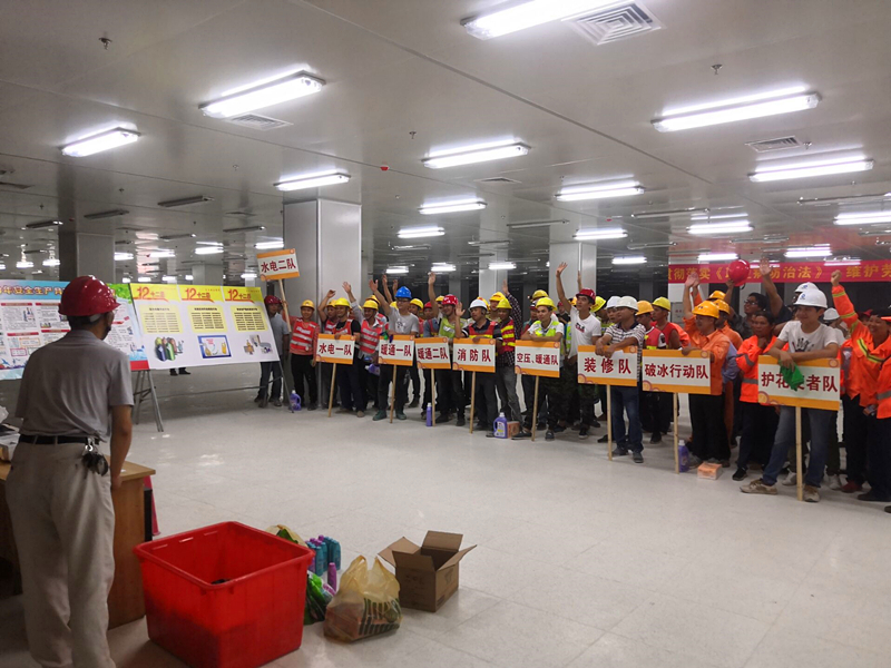 影片播放結(jié)束后,緊接著開展的是安全生產(chǎn)知識(shí)競(jìng)賽活動(dòng)。參與競(jìng)賽的人員根據(jù)不同工種、不同部門分成9支隊(duì)伍。競(jìng)賽內(nèi)容包括安全生產(chǎn)法律法規(guī)、應(yīng)急救援、消防、減災(zāi)防災(zāi)、勞動(dòng)保護(hù)等多方面知識(shí),競(jìng)賽形式為舉手搶答。競(jìng)賽過程中,9支代表隊(duì)你追我趕,毫不示弱,戰(zhàn)況十分激烈。選手們的活躍表現(xiàn)不時(shí)引來陣陣掌聲和歡笑聲,即使中途突發(fā)工地停電狀況,也未能澆滅大家的熱情,比賽在高漲的氣氛中繼續(xù)進(jìn)行。此次競(jìng)賽以寓教于樂的形式對(duì)管理人員和一線施工人員進(jìn)行安全知識(shí)普及,除進(jìn)一步提高其安全防范意識(shí)和應(yīng)對(duì)事故的處理能力,還豐富了大家的業(yè)余文化生活,為有效防止安全事故的發(fā)生提供了有利保障。