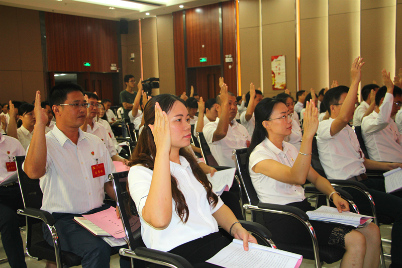與會黨員聽取相關(guān)工作報告,并對報告事項進行表決