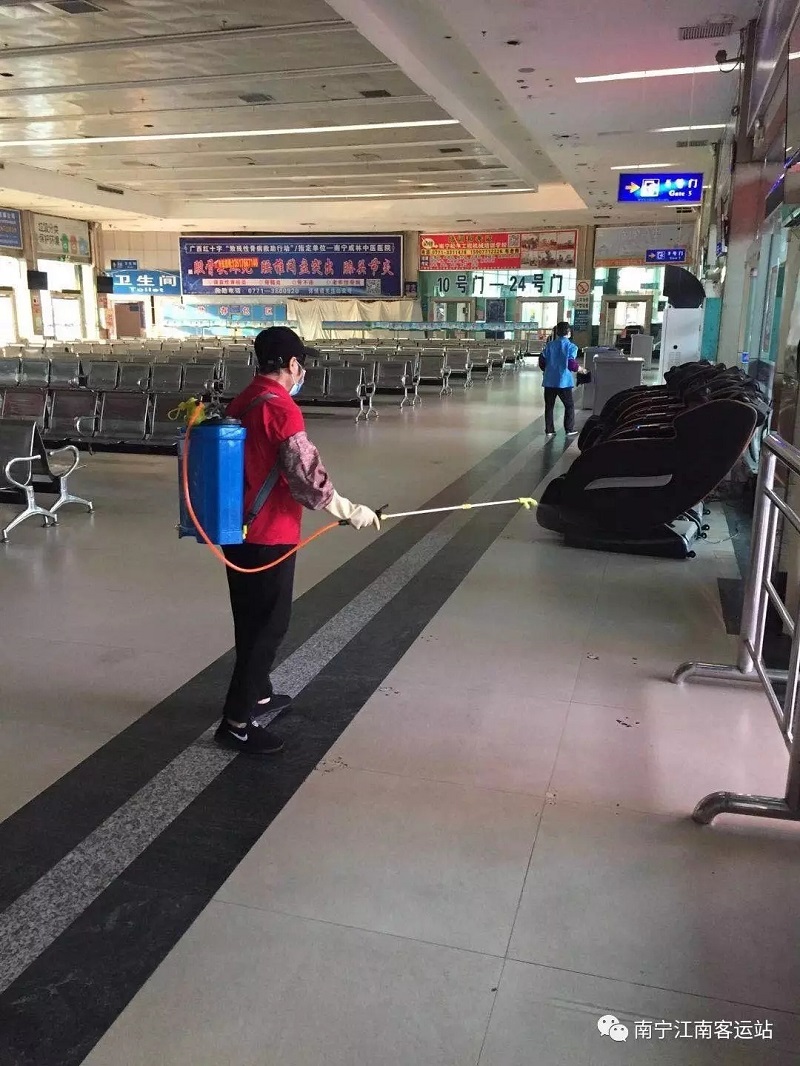 ▲江南客運(yùn)站對站內(nèi)座椅等相關(guān)設(shè)施進(jìn)行消殺。 (江南客運(yùn)站供圖)