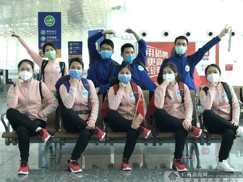 今天11時(shí)30分,廣西支援湖北第一批醫(yī)療隊(duì)153人出發(fā)去武漢天河機(jī)場(chǎng),乘坐14時(shí)的飛機(jī)返程。