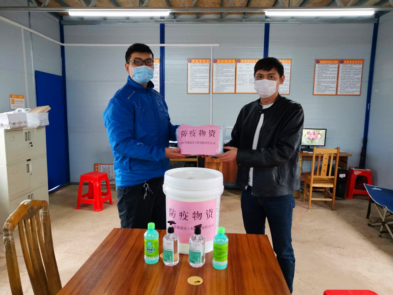 榮鑫公司副總經(jīng)理黎杰代表公司到項(xiàng)目現(xiàn)場(chǎng)送上防疫物資