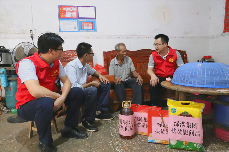 綠港集團黨委書記、董事長龔國強,黨委副書記、總經(jīng)理鄧繼慧在貧困戶梁承營家開展慰問(王振霖 圖)