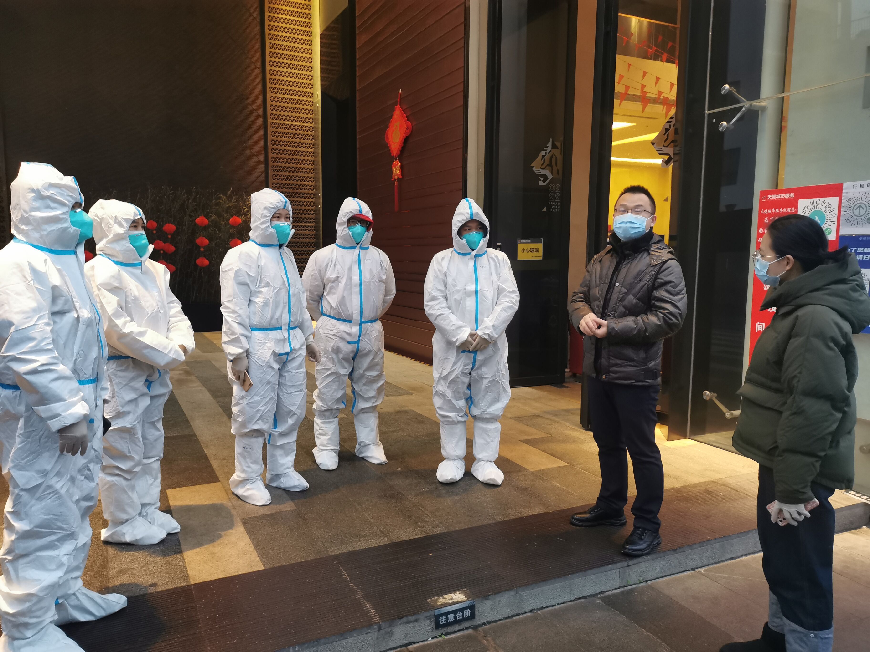 “您好!我們是疫情防控工作人員,由于在疫情排查過程中發(fā)現(xiàn)您的健康碼處于紅碼狀態(tài),因此要對您實(shí)行居家隔離措施,我們現(xiàn)在將在您的門口外安裝隔離門禁,請您按防控要求進(jìn)行居家隔離等待上門核酸檢測?!睘樽龊靡咔榉揽毓ぷ?,保障群眾生命安全,有效控制和降低新冠肺炎疫情傳播風(fēng)險(xiǎn),切實(shí)落實(shí)常態(tài)化疫情防控工作的各項(xiàng)措施,2月10日,綠港集團(tuán)迅速行動,配合社區(qū)工作人員對小區(qū)的居民進(jìn)行掃碼排查,并對排查出的黃碼、紅碼人員實(shí)行居家隔離措施。每到一戶,綠港集團(tuán)的工作人員針對居民的疫苗接種情況、家庭成員信息、近期出行軌跡進(jìn)行詳細(xì)摸排,認(rèn)真開展“三碼聯(lián)查”、測溫登記工作,從嚴(yán)從細(xì)防范疫情輸入。同時(shí)向居民宣傳疫情防護(hù)相關(guān)常識,告誡大家出門記得佩戴口罩、勤洗手多通風(fēng),盡量避免去人群聚集場所,關(guān)注官方權(quán)威發(fā)布,做到不信謠、不傳謠。