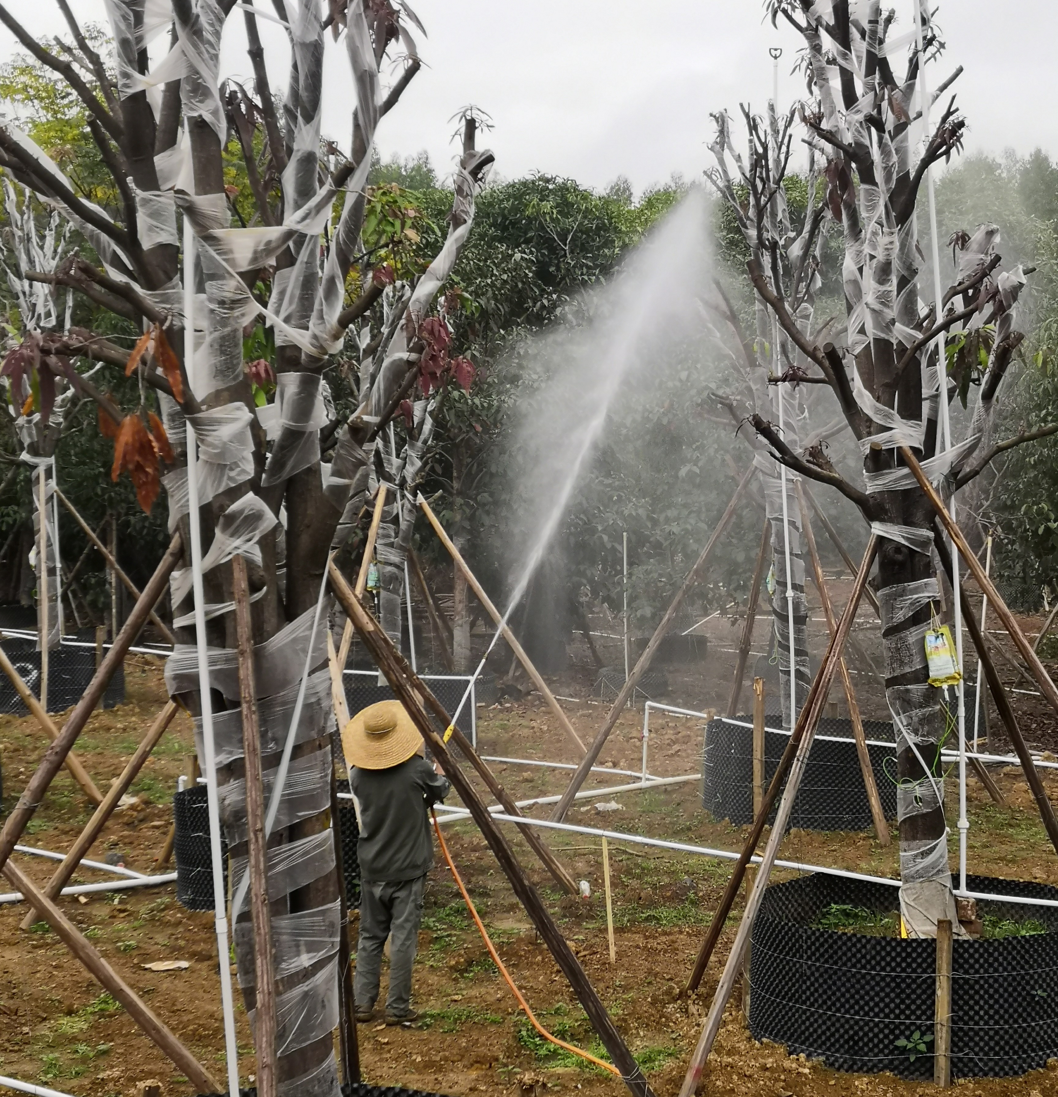針對(duì)影響扁桃移植存活率的主要原因,QC小組具體采取了以下措施:一是保留扁桃骨架,確保樹(shù)形完整,截枝時(shí)一次性垂直切割并處理好傷口;二是采用保水保溫性薄膜,間隔性覆蓋扁桃80%的主要軀干,預(yù)留部分區(qū)域確保透氣性;三是在高溫多雨季節(jié)加大“高效氯氰菊酯”等預(yù)防性藥物的噴灑量和噴灑次數(shù),并做好病蟲(chóng)害的監(jiān)控和動(dòng)態(tài)防治;四是種植前對(duì)場(chǎng)地進(jìn)行尿素及復(fù)合肥的噴施和翻耕,種植后施放生根劑,并持續(xù)對(duì)扁桃溫濕度、土壤PH值進(jìn)行實(shí)施監(jiān)測(cè),適時(shí)追肥,調(diào)節(jié)土壤至偏酸性。