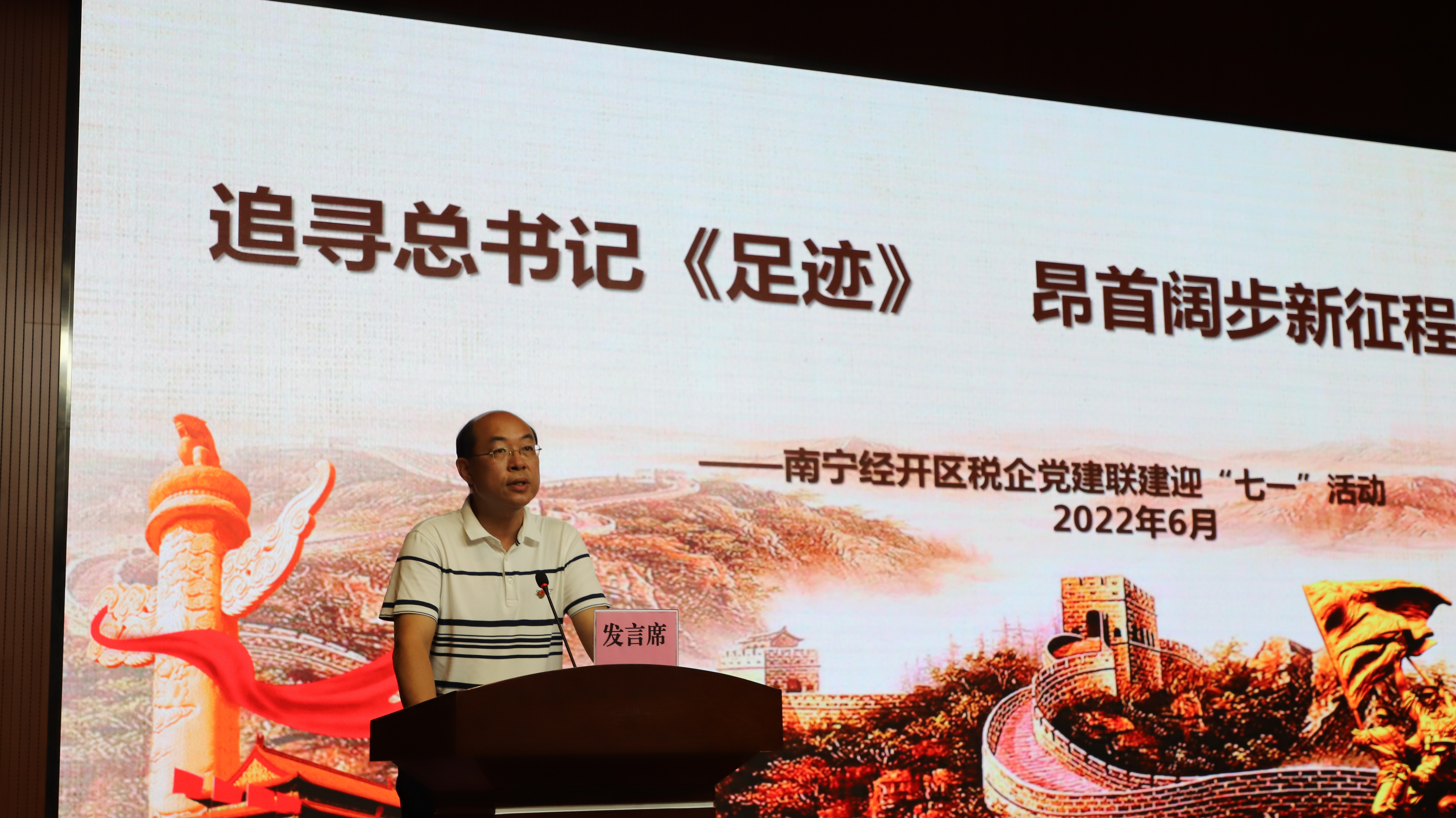 參加活動(dòng)的全體黨員認(rèn)真觀看央視《組合式稅費(fèi)支持政策助企紓困成效顯現(xiàn)》視頻。經(jīng)開(kāi)區(qū)稅務(wù)局黨委書(shū)記、局長(zhǎng)胡大洪介紹稅務(wù)部門(mén)黨建引領(lǐng)促減稅降費(fèi)落地落實(shí),表示在貫徹落實(shí)黨中央、國(guó)務(wù)院稅費(fèi)減免政策上,經(jīng)開(kāi)區(qū)稅務(wù)局行動(dòng)快速、措施有力,成立了留抵退稅“黨員突出隊(duì)”和“青年先鋒隊(duì)”,發(fā)揮黨團(tuán)員先鋒和表率作用,確保國(guó)家的惠企政策落到實(shí)處,讓廣大市場(chǎng)主體充分、便捷地享受到政策紅利。綠港集團(tuán)、中外運(yùn)廣西有限公司陸運(yùn)事業(yè)部、南寧恒楓飲料有限公司3個(gè)企業(yè)黨員代表分別上臺(tái)作交流。綠港集團(tuán)榮鑫公司黨支部書(shū)記李汝埠表示,政策紅利也是中小企業(yè)發(fā)展的一大助力,今年4月份以來(lái),我國(guó)實(shí)施組合式稅費(fèi)支持政策,經(jīng)開(kāi)區(qū)稅務(wù)局積極促進(jìn)這一政策落地落實(shí),作為綠港集團(tuán)下屬的榮鑫公司切實(shí)享受到政策紅利,疫情防疫常態(tài)化的當(dāng)下,不少中小企業(yè)都遇上許多難題,希望稅務(wù)部門(mén)在稅務(wù)方面著力為納稅人解難題,確保企業(yè)能享會(huì)享、應(yīng)享盡享稅收優(yōu)惠政策。