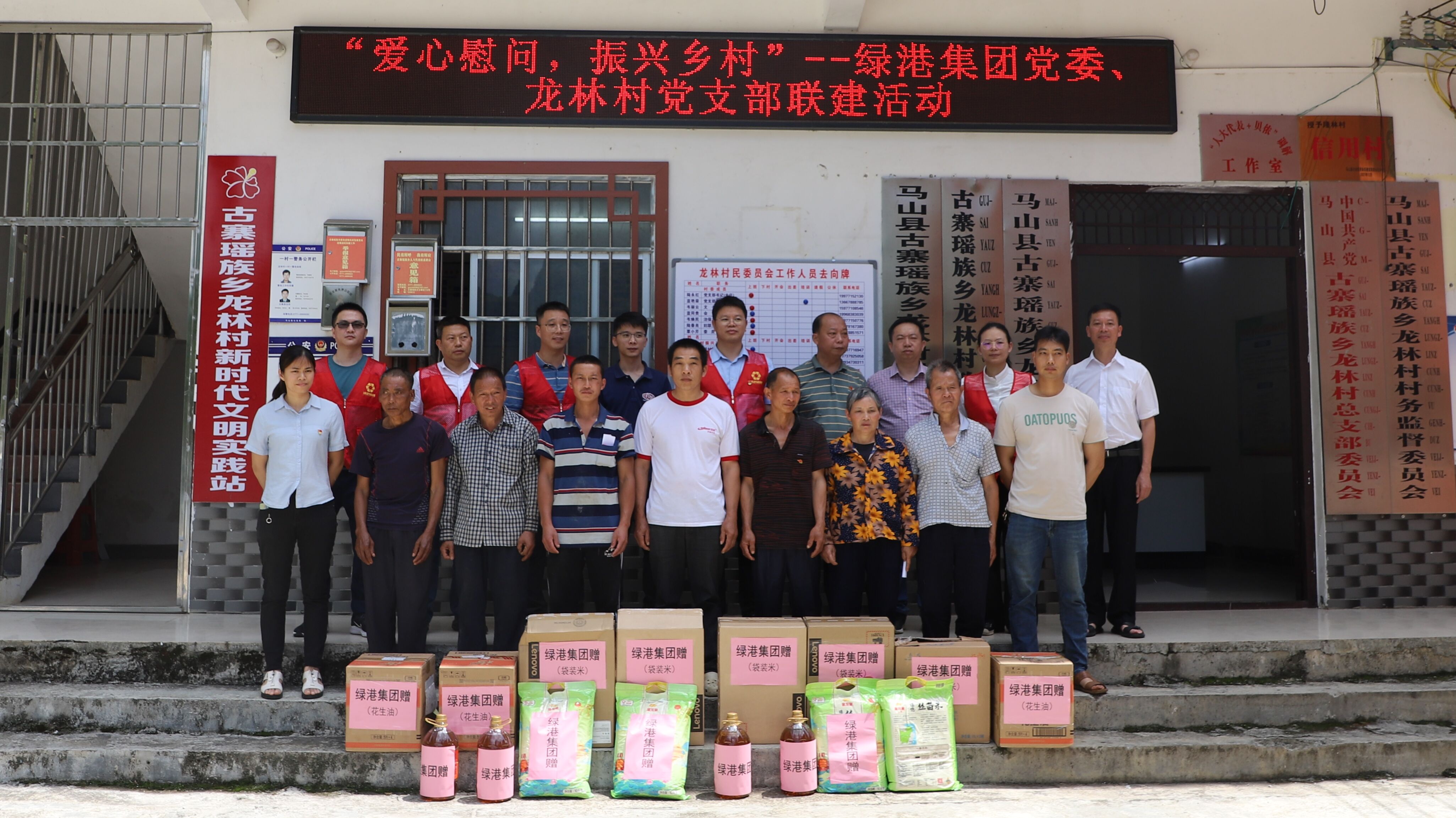 5月29日,綠港集團(tuán)黨委副書(shū)記、總經(jīng)理鄧?yán)^慧,黨委委員、副總經(jīng)理陸羿冰,黨委委員、副總經(jīng)理陽(yáng)正輝,以及集團(tuán)黨委辦和萬(wàn)方公司黨支部的部分同志代表集團(tuán)黨委,到對(duì)口幫扶的馬山縣古寨瑤族鄉(xiāng)龍林村開(kāi)展村企聯(lián)建慰問(wèn)活動(dòng)。綠港集團(tuán)派駐龍林村第一書(shū)記梁華以及龍林村干部、駐村工作隊(duì)員一起參加了活動(dòng)。