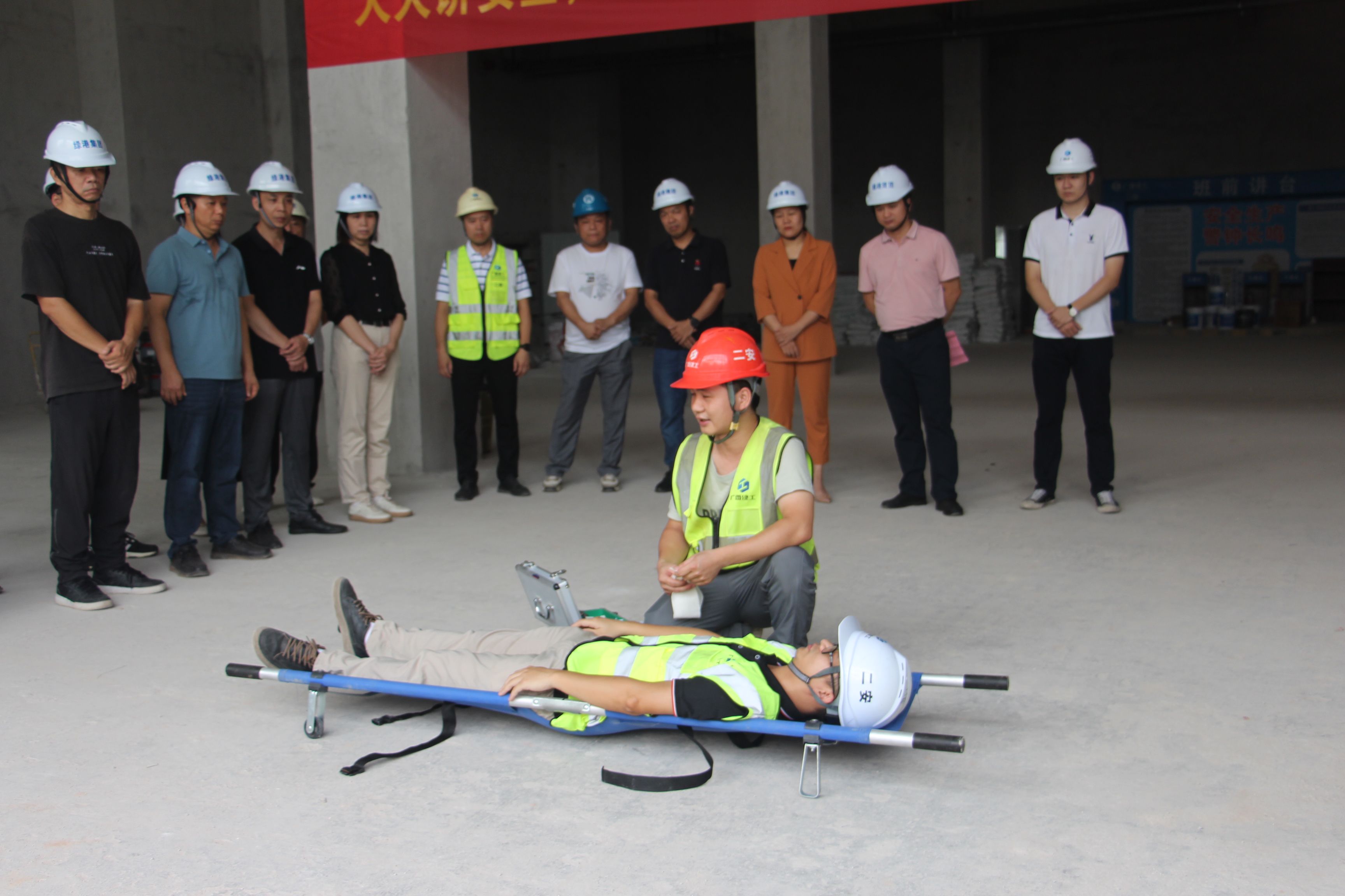 6月20日,嘉通公司在綠港·雙創(chuàng)城項目現(xiàn)場2023年“安全月” 救援及消防應(yīng)急演練活動。雙創(chuàng)城項目負(fù)責(zé)人就高處墜落、物體打擊的救援處置和項目火災(zāi)應(yīng)急處置等相關(guān)知識進(jìn)行了講解。隨后,進(jìn)行了傷口包扎、心肺復(fù)蘇、醫(yī)療急救以及滅火器操作演練。
