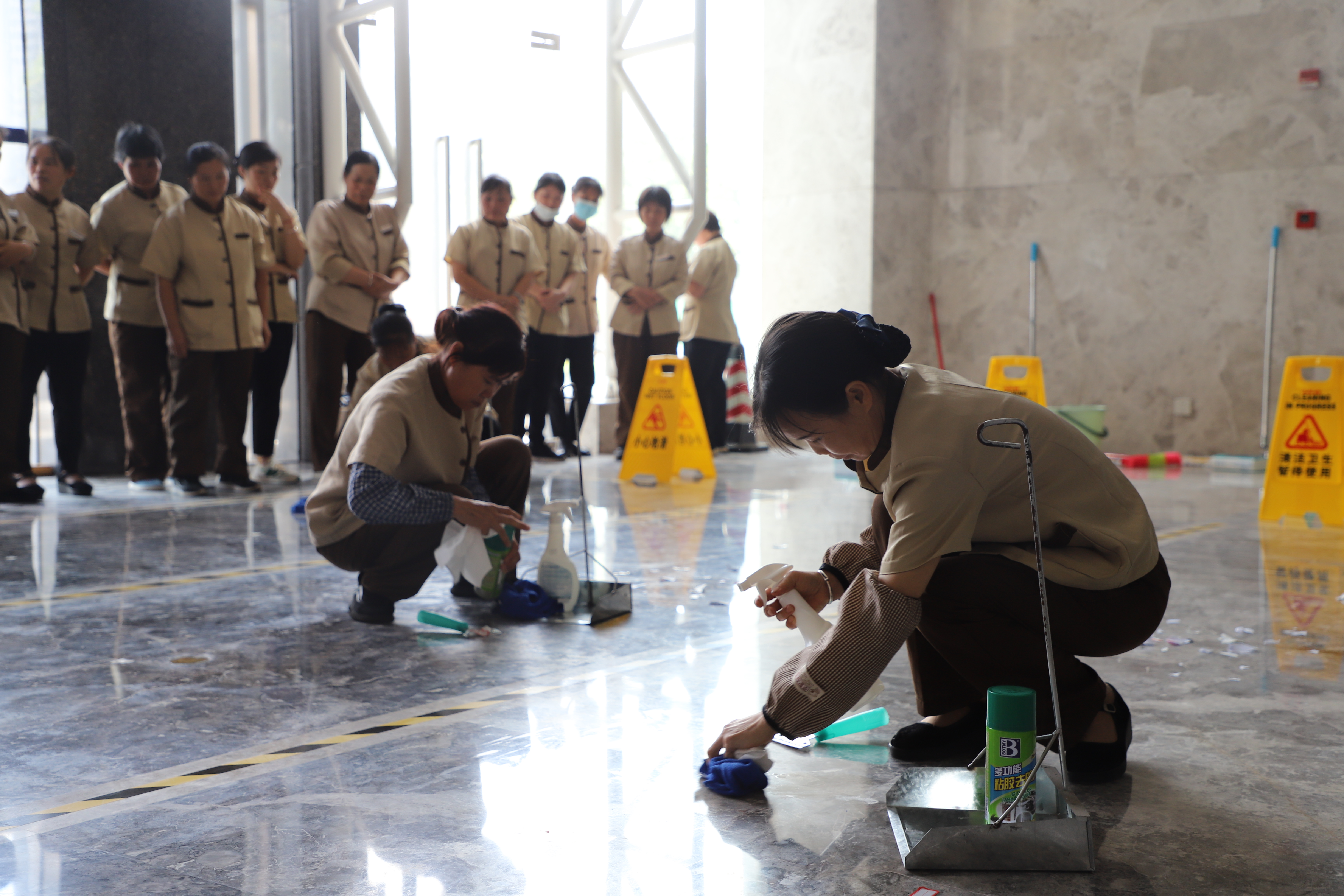 在她們的一雙巧手下地板煥然一新,充分展現(xiàn)了萬方保潔人員的專業(yè)風(fēng)采。