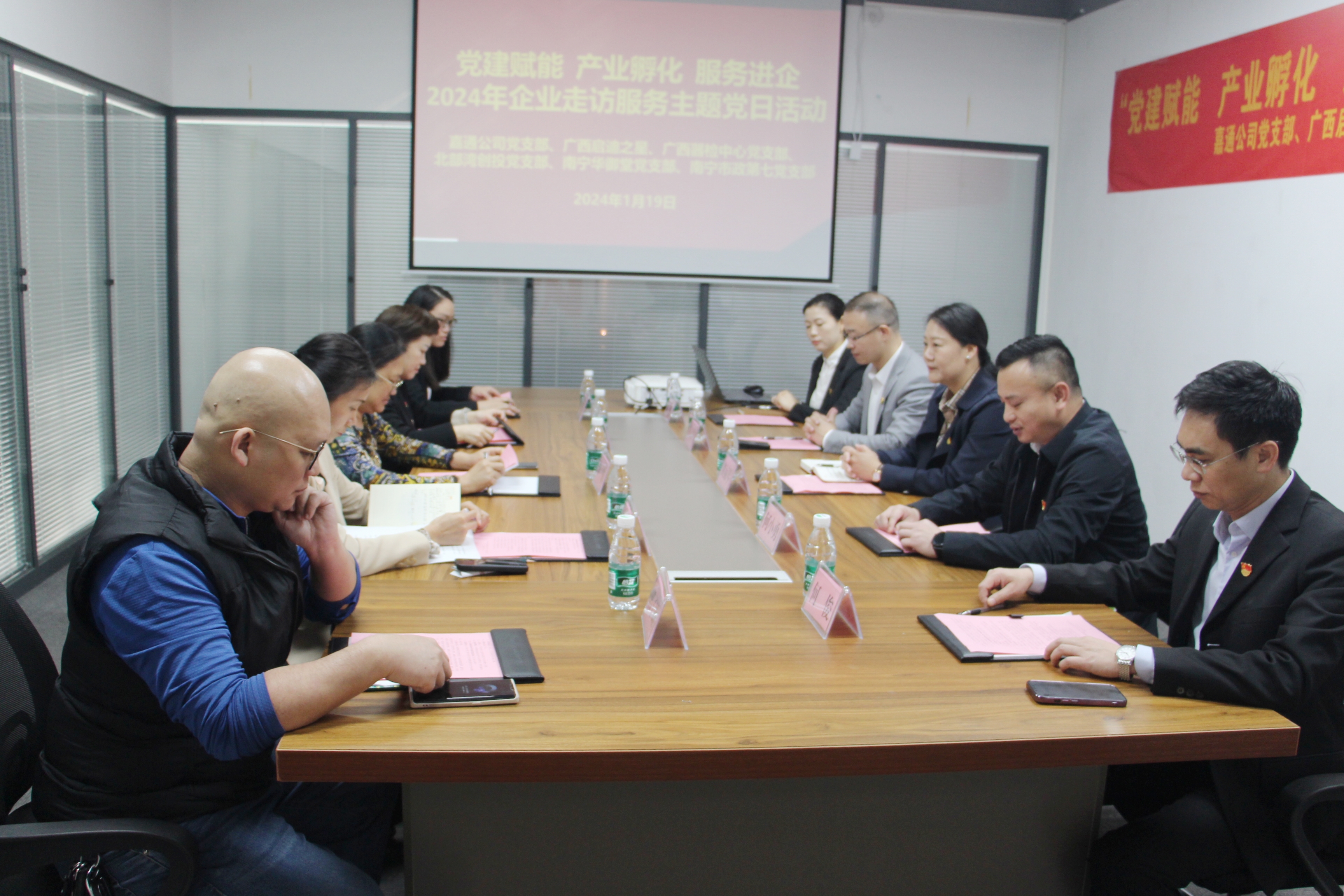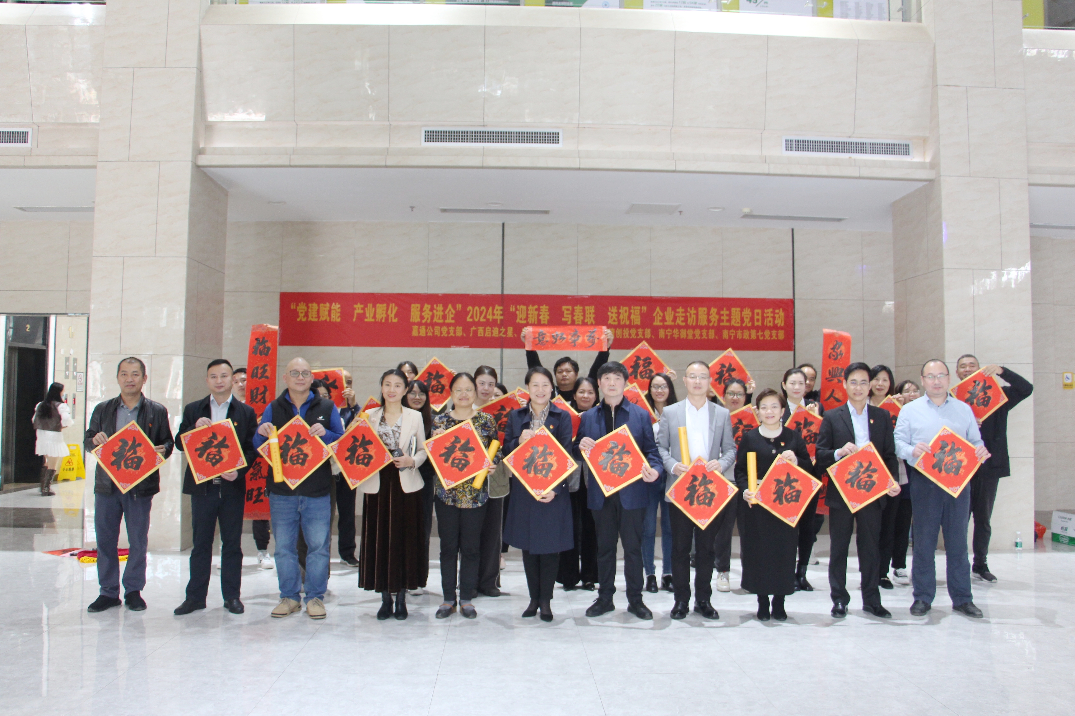 為深化黨建與業(yè)務(wù)融合,通過黨建引領(lǐng)提升企業(yè)服務(wù)質(zhì)量,發(fā)揮好產(chǎn)業(yè)經(jīng)濟穩(wěn)定器功能,以做強“鏈上黨建”推動產(chǎn)業(yè)高質(zhì)量發(fā)展,1月19日,嘉通公司黨支部深入金凱工業(yè)園聯(lián)合廣西啟迪之星公司、廣西器檢中心黨支部、北部灣創(chuàng)投黨支部、南寧華御堂黨支部、南寧市政第七黨支部開展“黨建賦能 產(chǎn)業(yè)孵化 服務(wù)進(jìn)企”2024年“迎新春 寫春聯(lián) 送祝?!逼髽I(yè)走訪服務(wù)主題黨日活動,嘉通公司黨支部黨員代表及職工代表參加本次活動。